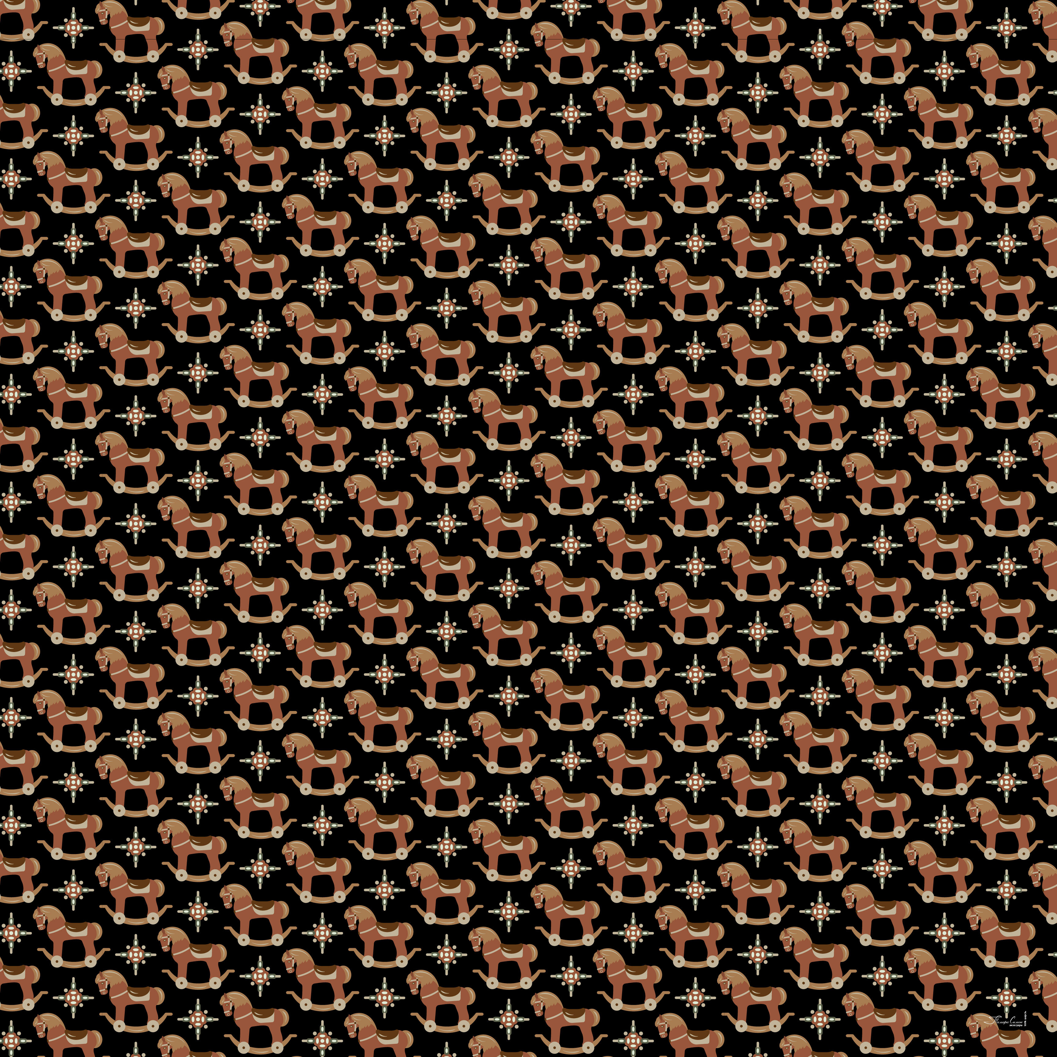 Шаль 120*120см, ЛОШАДКИ на чёрном