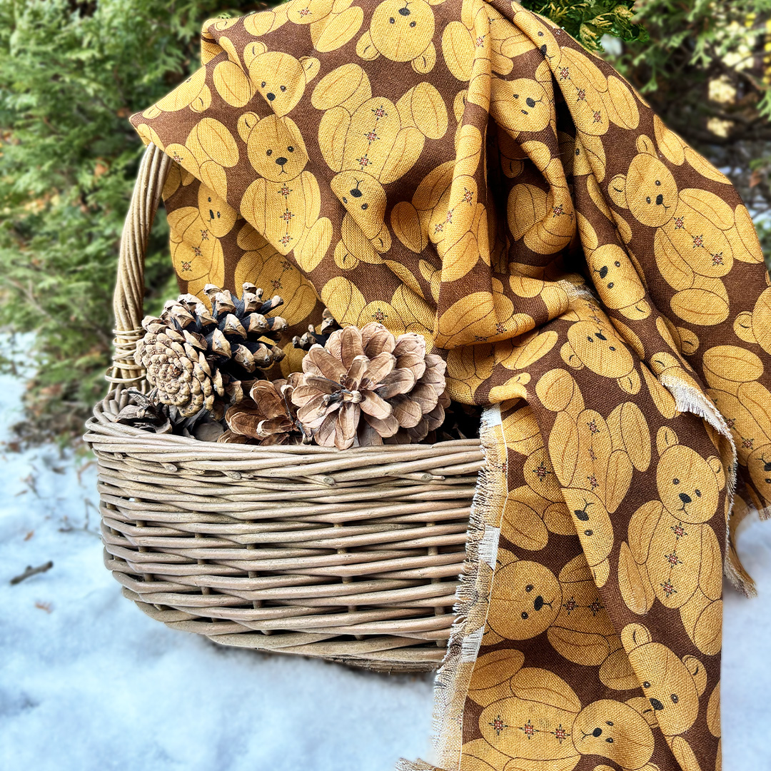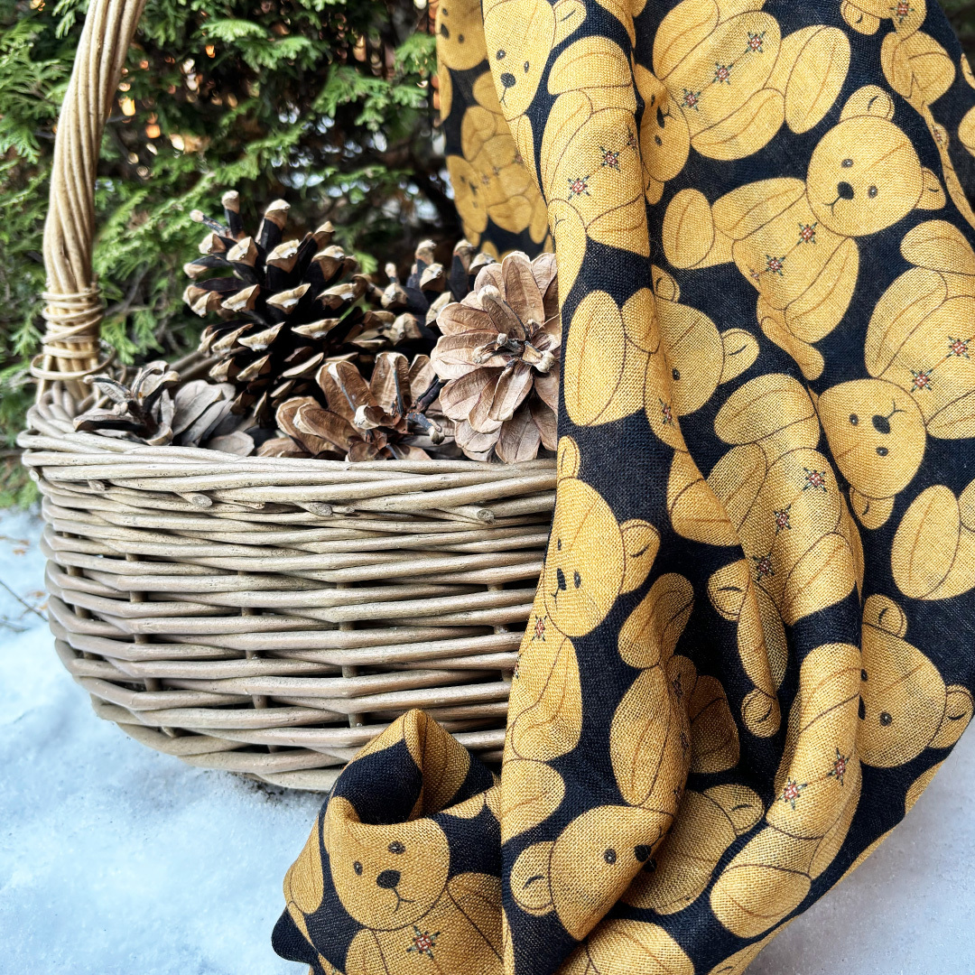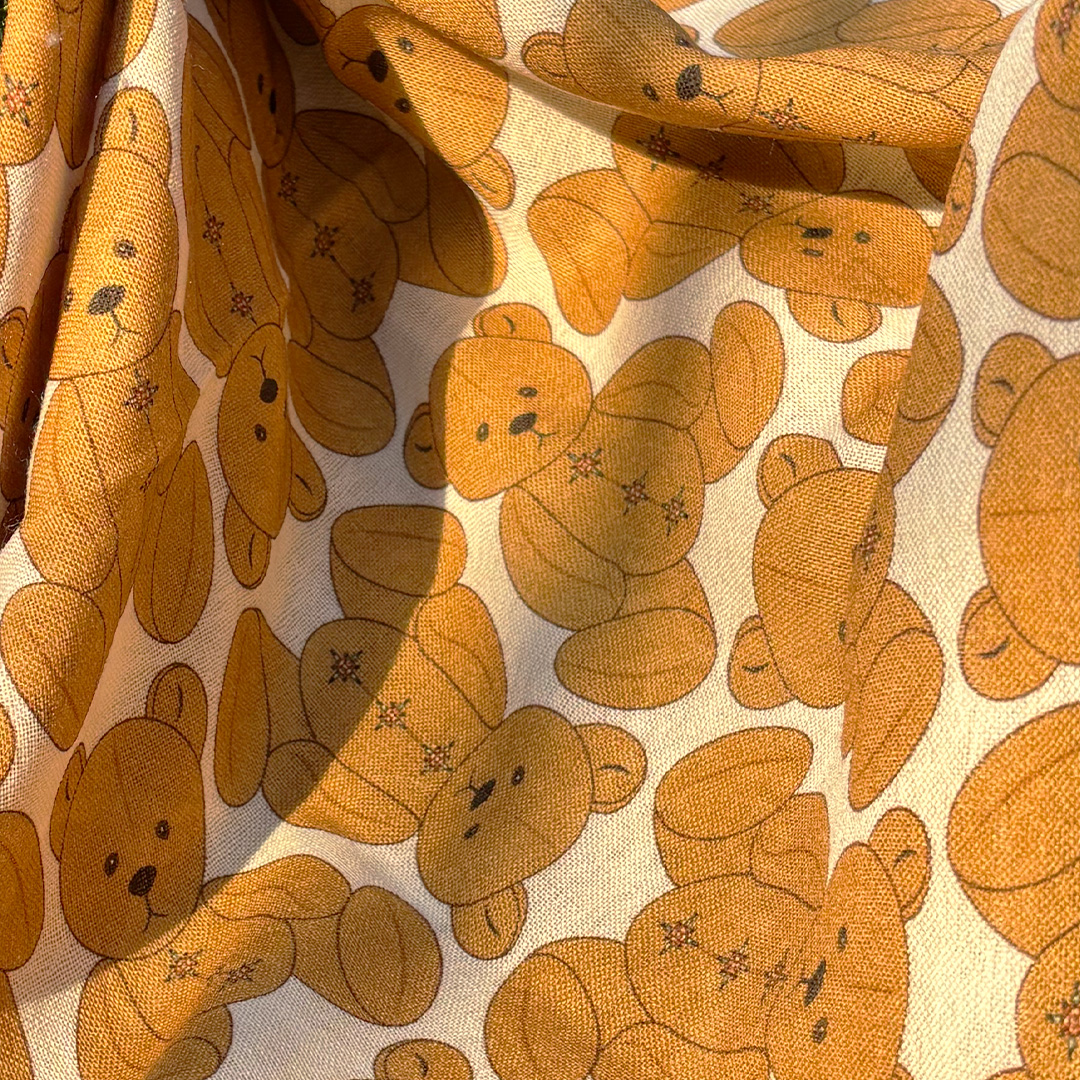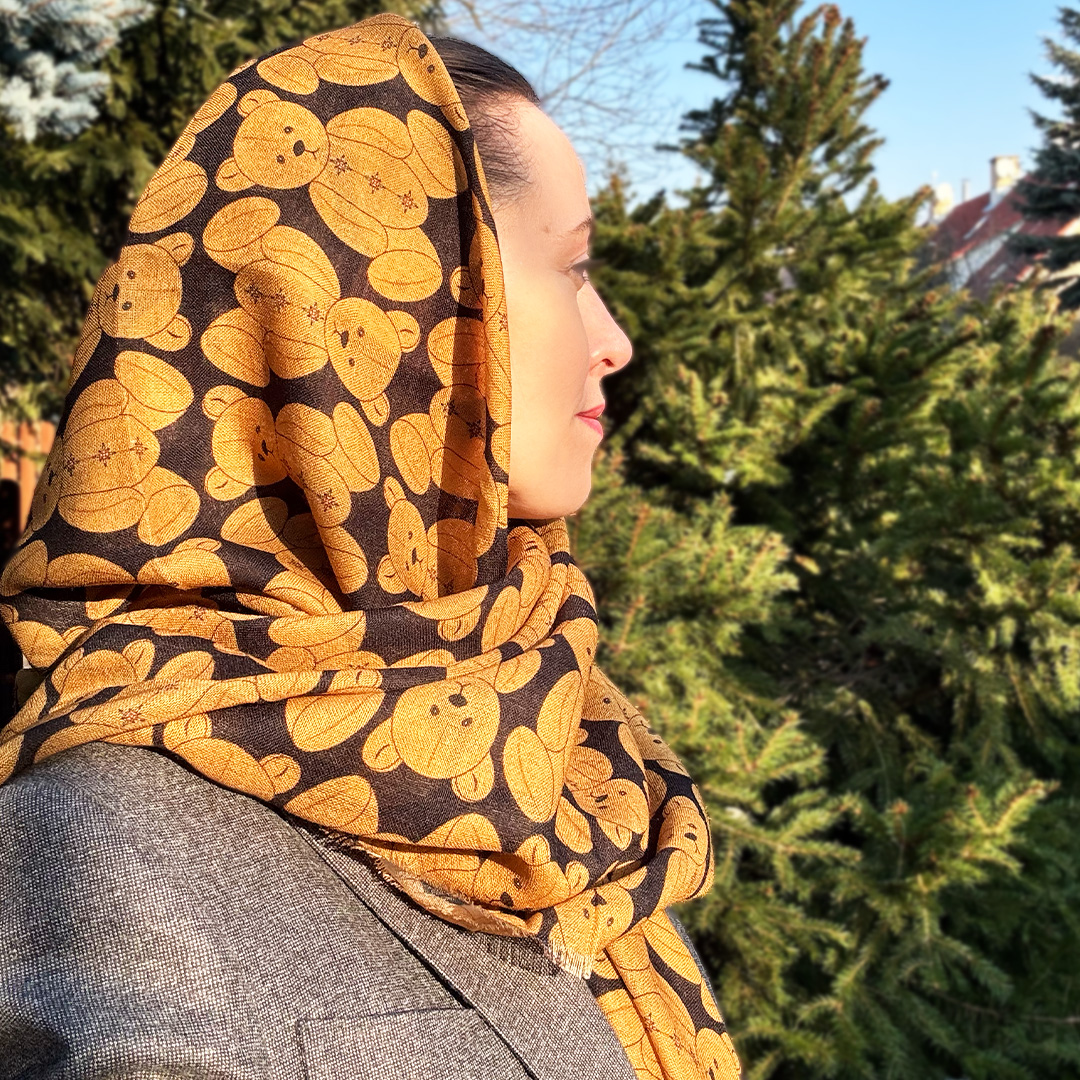 Шаль из тонкой натуральной шерсти. Авторский принт из серии ТЭДДИ, бахрома по краю.